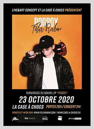 Félix Rabin, vernissage de son premier EP, «Pogboy» le vendredi 23 octobre 2020 à la Case à Chocs, Neuchâtel, Suisse.