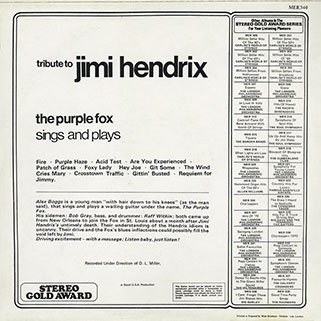 Album Title (titre de l'album): | TRIBUTE TO JIMI HENDRIX The PURPLE FOX SINGS AND PLAYS | ||