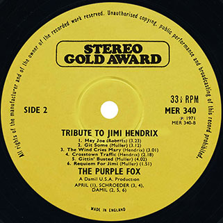 Album Title (titre de l'album): | TRIBUTE TO JIMI HENDRIX PURPLE FOX SINGS AND PLAYS |