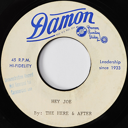 Here and After 7" acetate,45 rpm label Damon Recording Studios, USA, 1967. Songs Hey Joe and Talk Talk