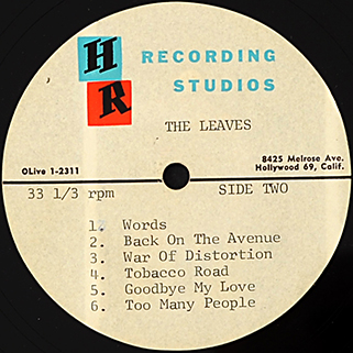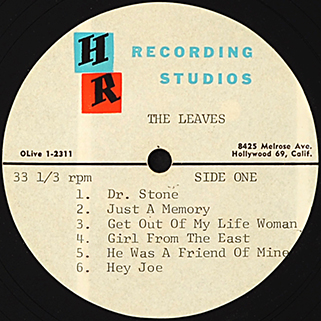 The Leaves LP Acetate "Hey joe" label HR Recording Studios # OLive 1-2311, USA, 1965